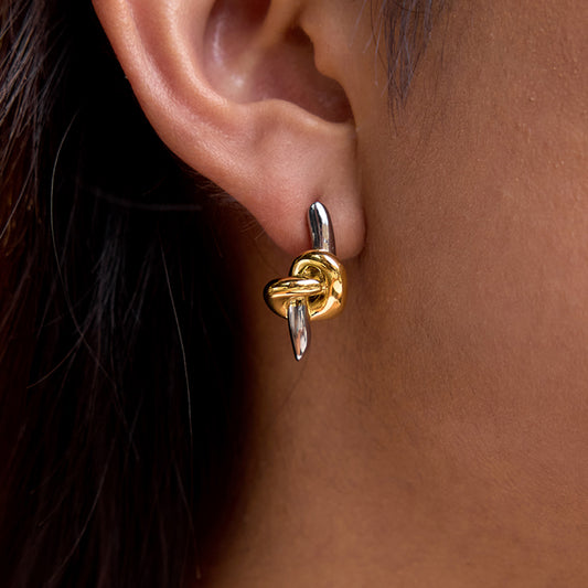 Two Tone Knots Hoop Stud Earrings