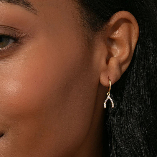 Zirconias Wishbone Huggie Earrings