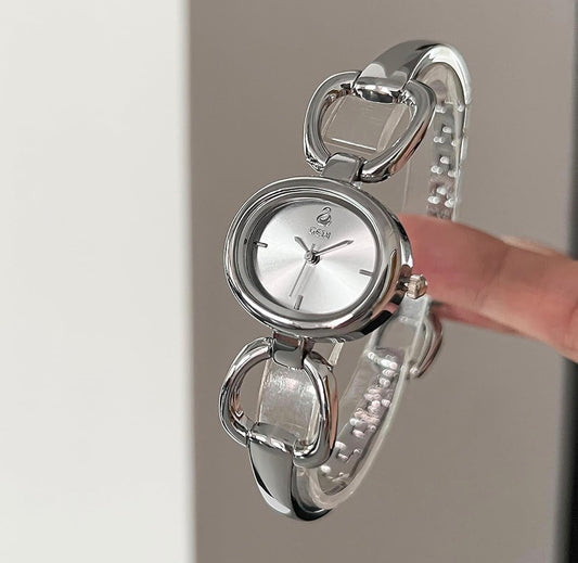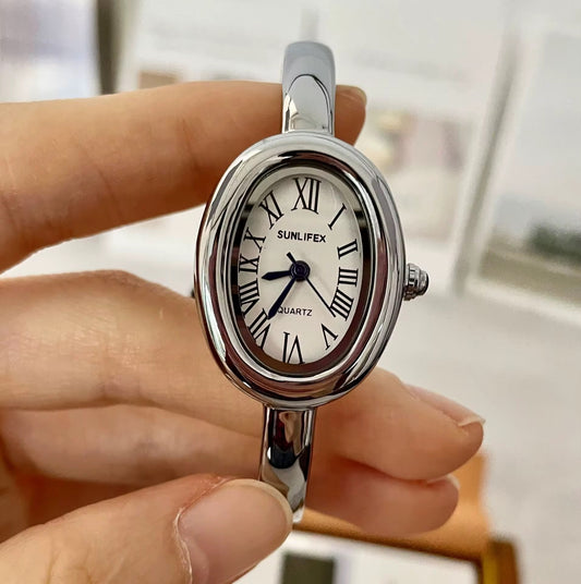 Silver Oval Bangle Watch