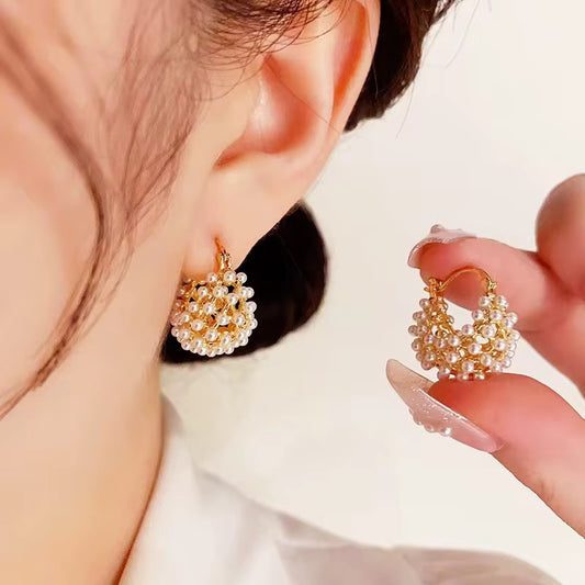 Pearls & Zirconia Cross Pendant Hoop Earrings