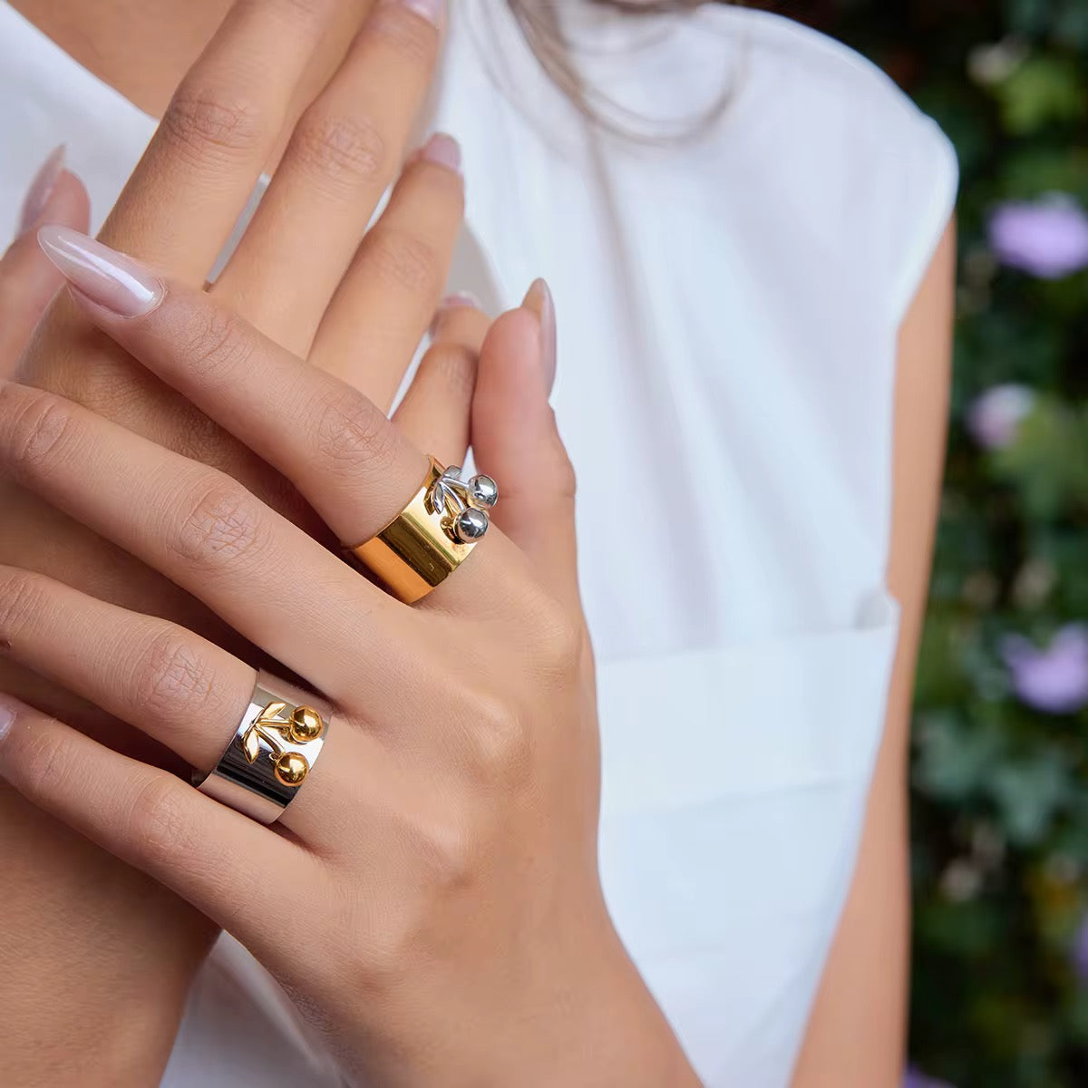 Two Tone Cherry Wide Ring