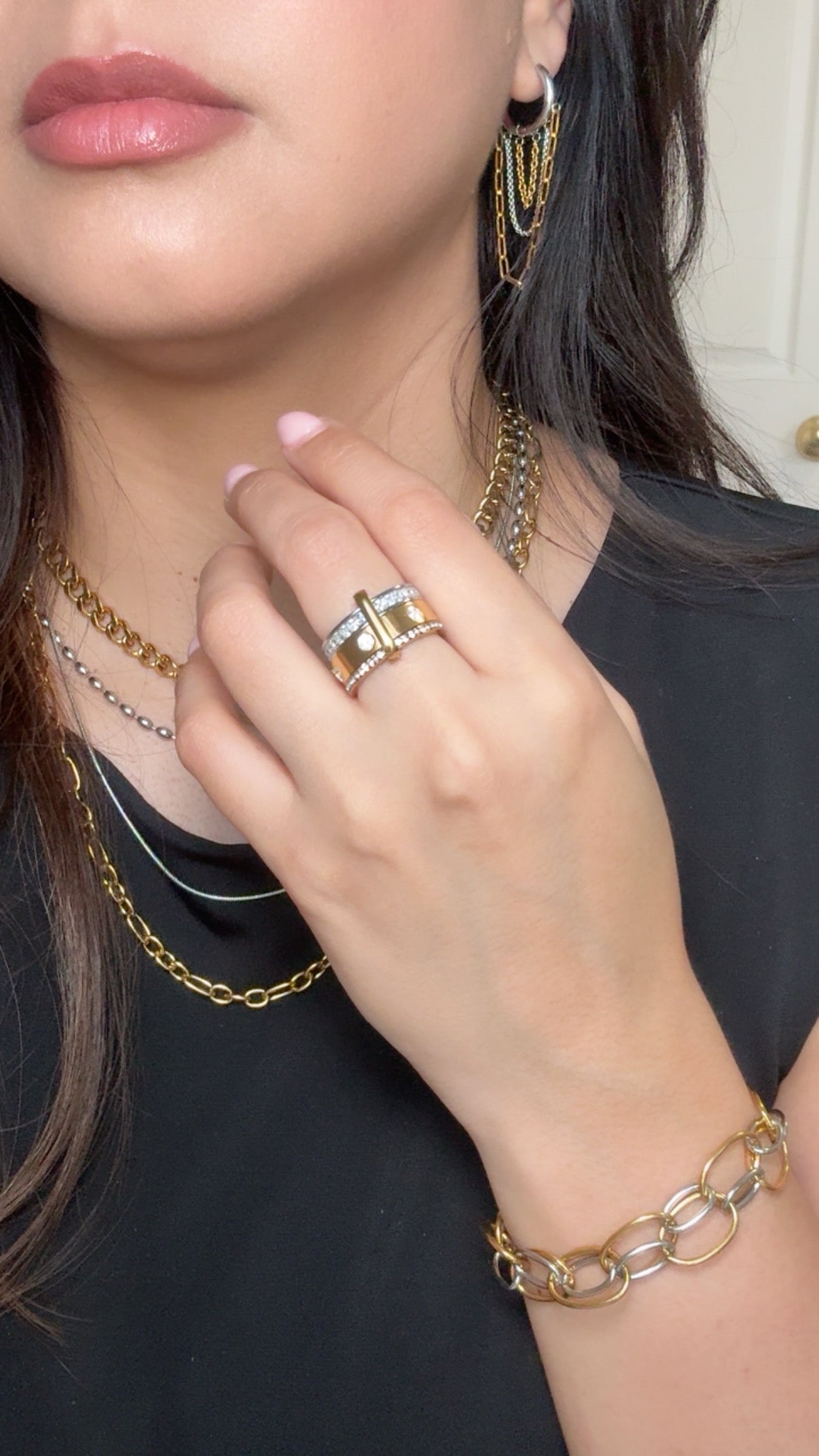 Two Tone Chains Hoop Earrings