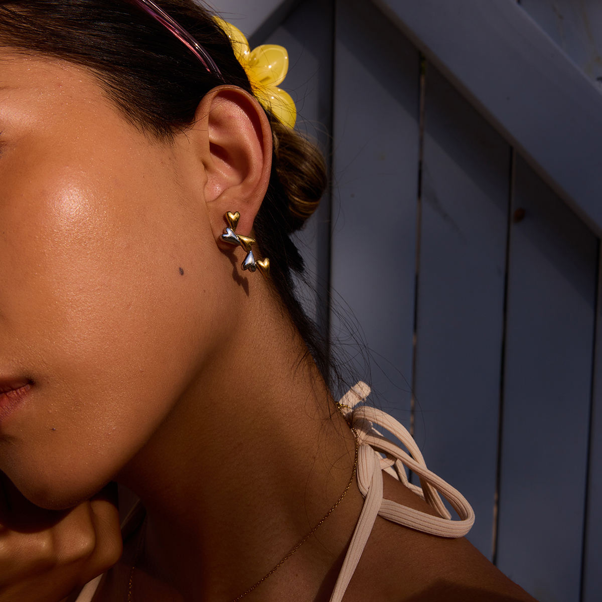 Two Tone Hearts Long Stud Earrings